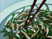 Back on the Bebop, Spike practices his martial arts and contemplates Katerina's situation as Jet throws him a cigarette and announces dinner – bell peppers and "beef."